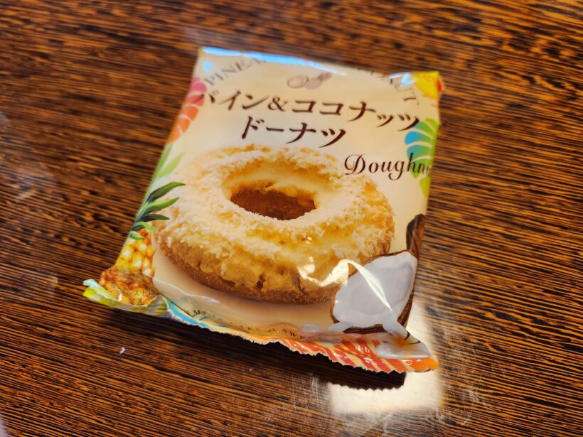 気持ちだけでも遠出した気になりたい!ということで、ファミマで見つけてなんとなく買った「パイン&ココナッツドーナツ」をおやつに食べました。(ただ食べたかっただけ)