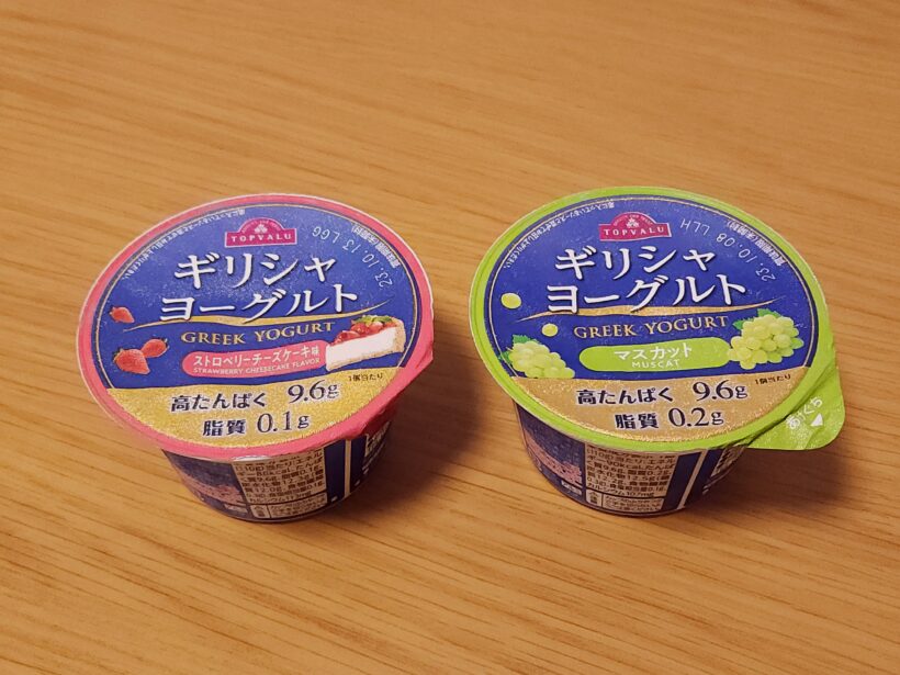 最近記事にしたトップバリュのギリシャヨーグルトですが、イオンの方のスーパーで売ってるストロベリーチーズケーキ味とマスカット味がめっちゃ大当たりでした!!