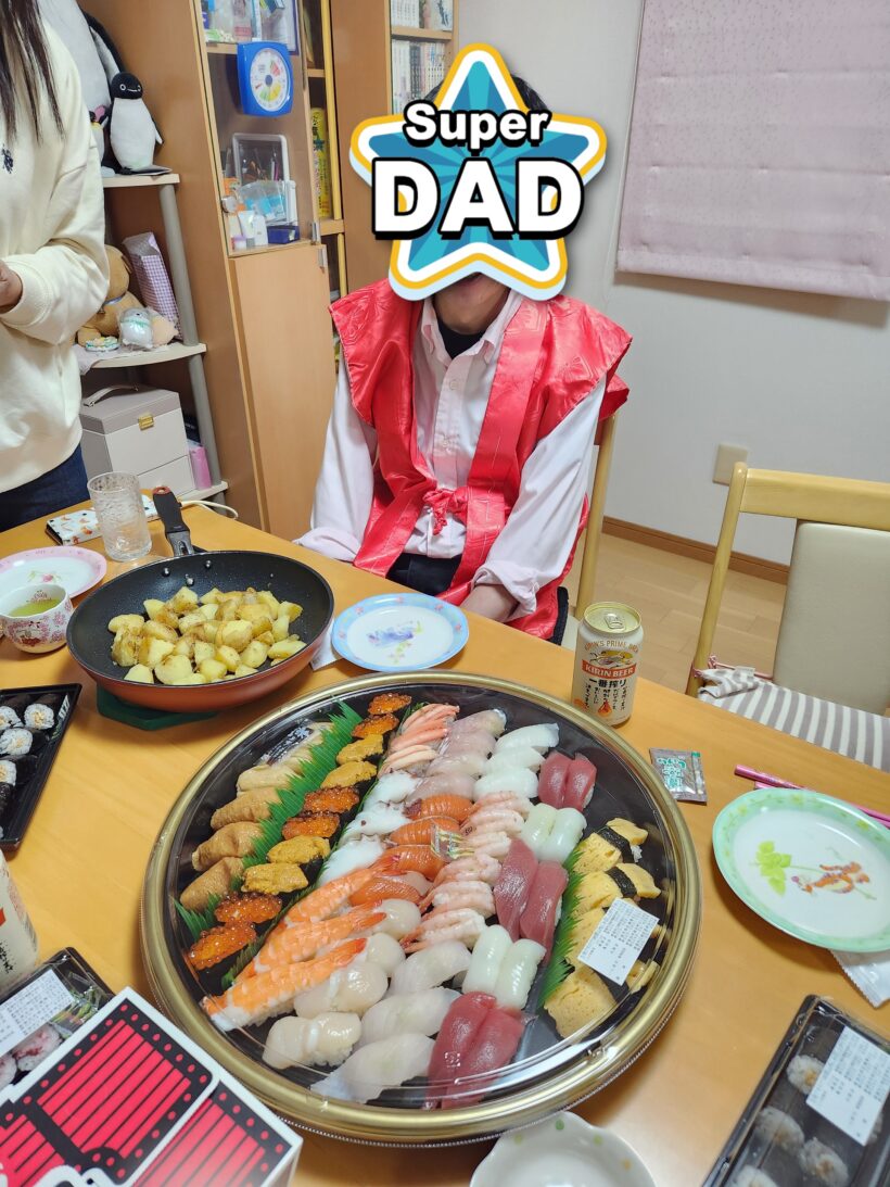 父は1番の大好物である蟹寿司を独り占めしてご満悦でした!よかったね。