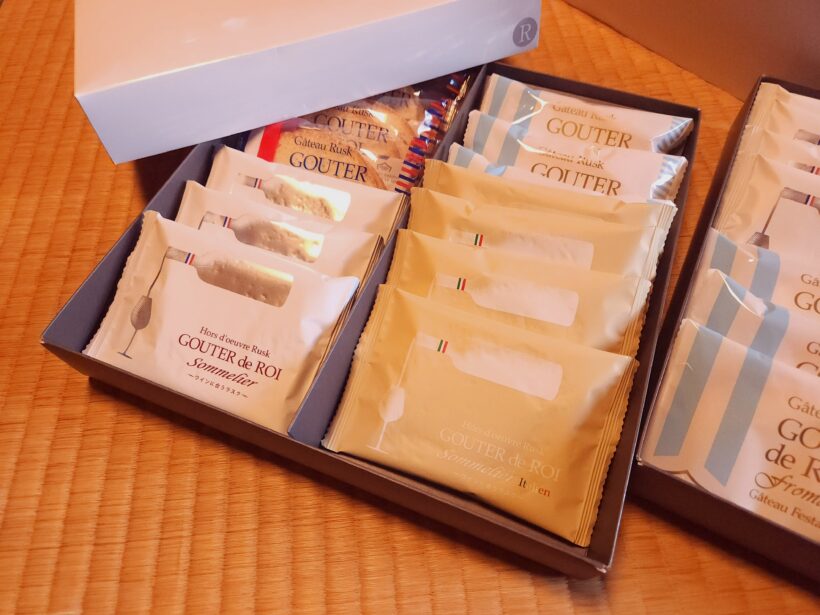 こちらは定番のラスクとチーズ味の甘いラスク、おつまみのしょっぱいラスク2種のセット。
