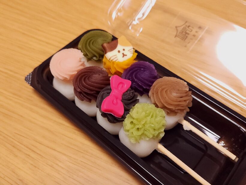 ベースとなるお団子が本当にもっっっちもちでほの甘くてなんなら素のままでも4~5本いけそうなくらいなのがいい……。どのあんこが乗っても負けずにしっかり支えてくれています。