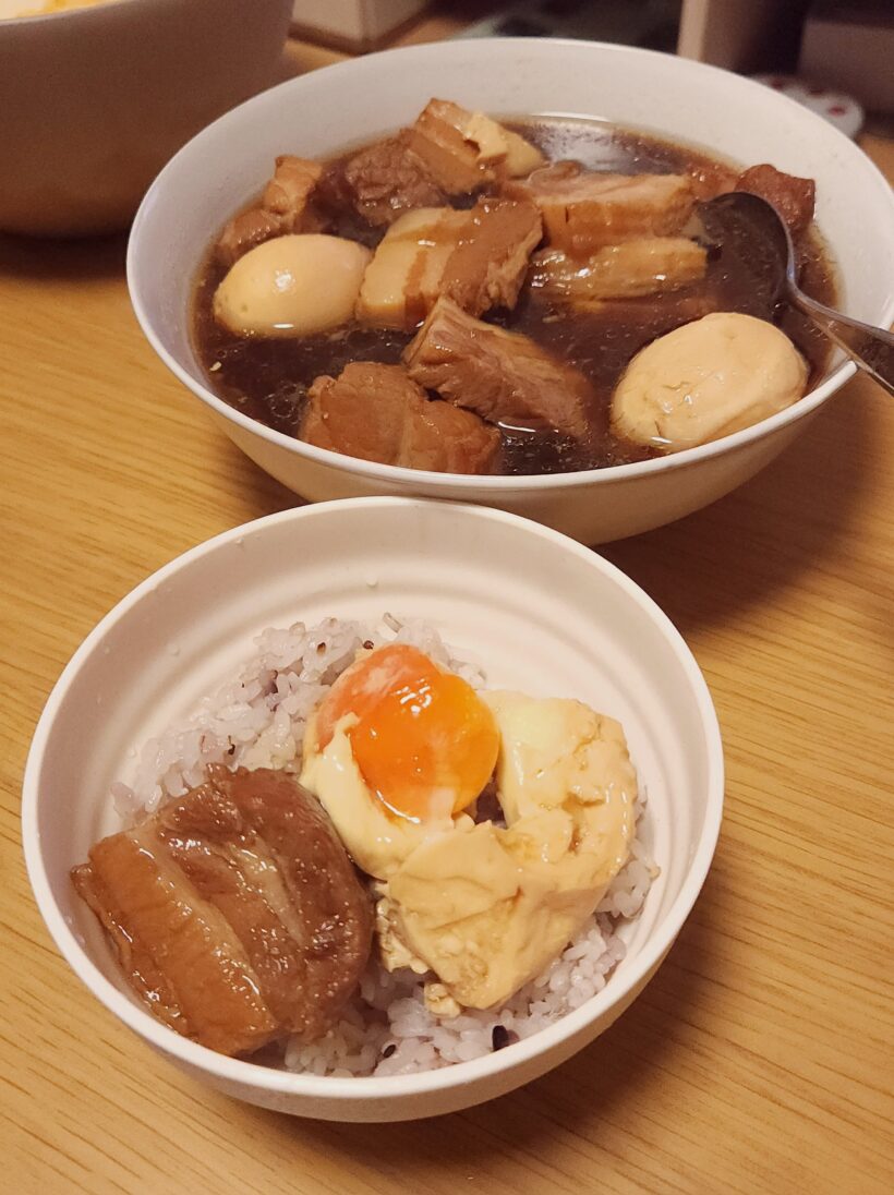 ゆで卵の茹でが足りずちょっと崩れたところもあったけど、角煮自体はハチャメチャ大成功!!!