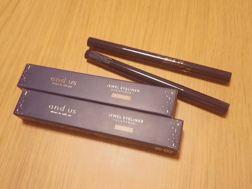 HAZELはいつものアイライナーにブラスして目尻にひいて、ALMONDは下まぶたを縁取るように使うのが個人的ベストでした。