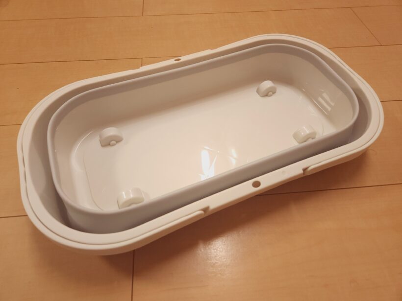 12リットル入る大きさで、Tシャツのつけ置き洗いをちょうどよく楽々出来るサイズ感。今までは洗面台を綺麗にしてからそこにお湯を張って……ととにかく面倒だしなんか気持ち悪かったんでそれが無くなると思うと小躍りしたくなる気分です。