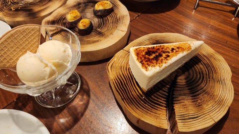 木の板に載せられてるのは、ほんとに目の前でチーズケーキをバーナーで炙ってくれるから!