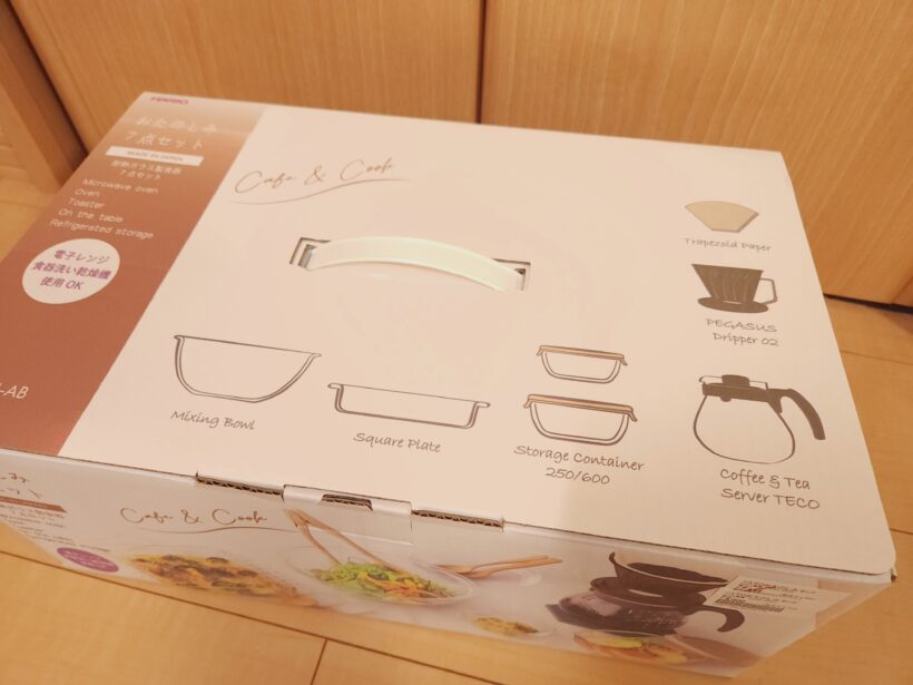 7点セットは耐熱ガラスのボウル、スクエア皿、タッパーとコーヒーのドリッパー・ポットのセット!