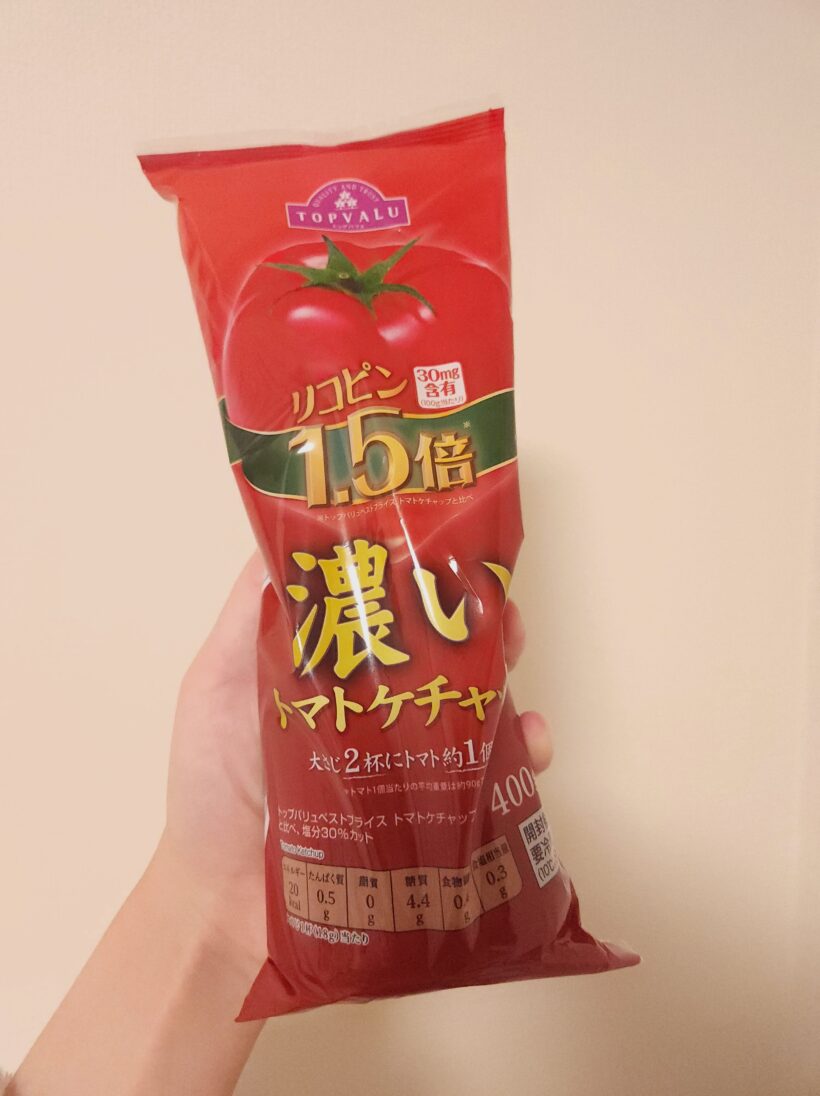 トップバリュの濃いトマトケチャップ、酸味少ないのにトマト感濃厚でサイコ〜です!!!