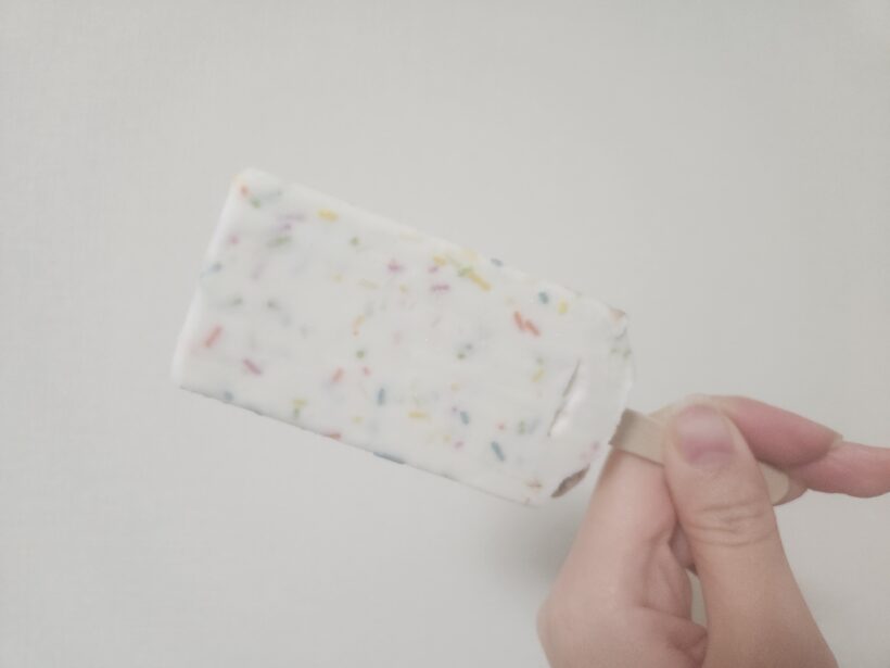 カラースプレーはしっかりパリパリで、とろけるホイップクリーム風アイスとの食感の違いが楽しいです。