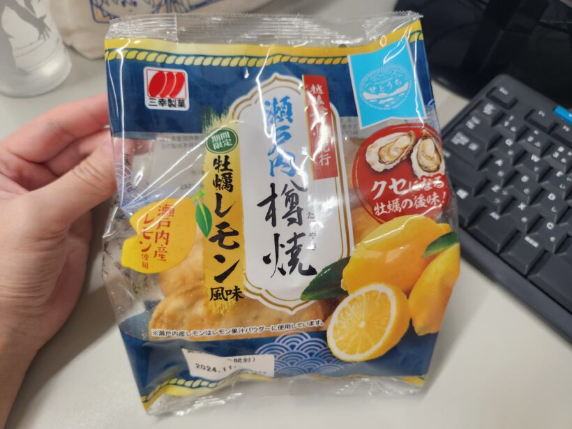 牡蠣のおせんべいって1年通してあんまり見ないので、そこにさらにレモンまでというとてをださずにはいられません。
