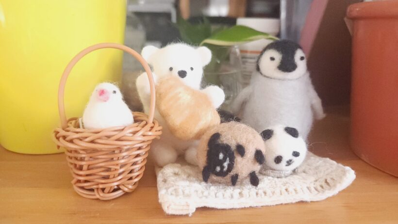 実家にかえったら、地味に妹の羊毛フェルト作品コーナーができていました。
