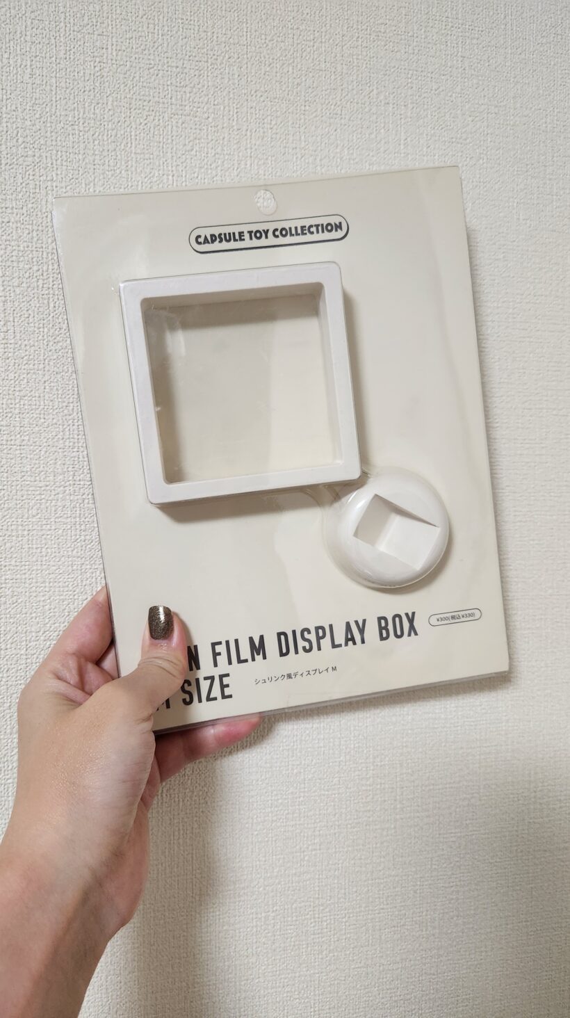この枠自体はパカッと開くようになっていて、ラップのようなところにディスプレイしたいものを置いてあとは枠を閉じるだけ。