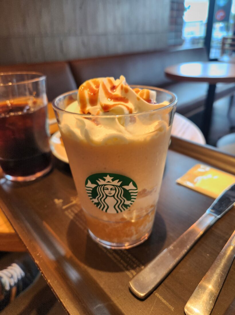 しばらくイートインでスタバを利用してなかったので、いつのまにかフラペチーノもグラス提供になっていることにビックリしました。グラスといいつつプラ製だったけど、なんかしっかりしてる感じがいいです。安定感というか⋯⋯?