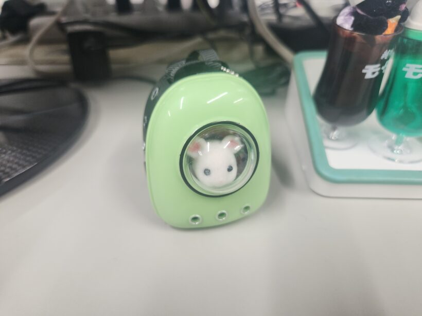 この前ガチャでゲットしたミニチュアペットリュック、ぴったり収まれる子を見つけました。