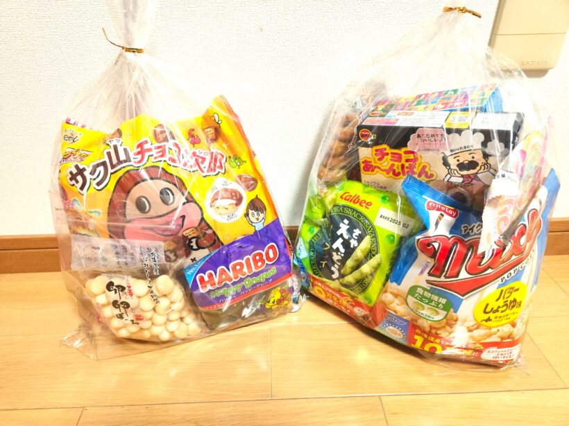 百均のいちばん大きいラッピング袋を2枚使わないと行けなかったのは誤算でしたが、これはこれでたくさん貰った感がでて良かったと思います。