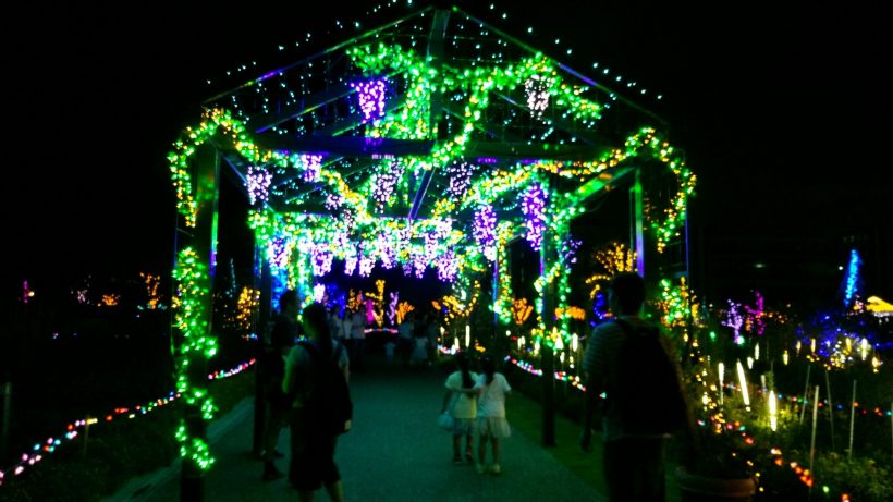 万代でしこたま浪費した後は、暗くなってから家族でいくとぴあ食花の『GROWING ILLUMINATION 2017 SUMMER ~花と光のファンタジー~』に行ってきました。