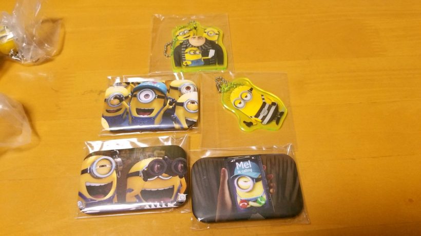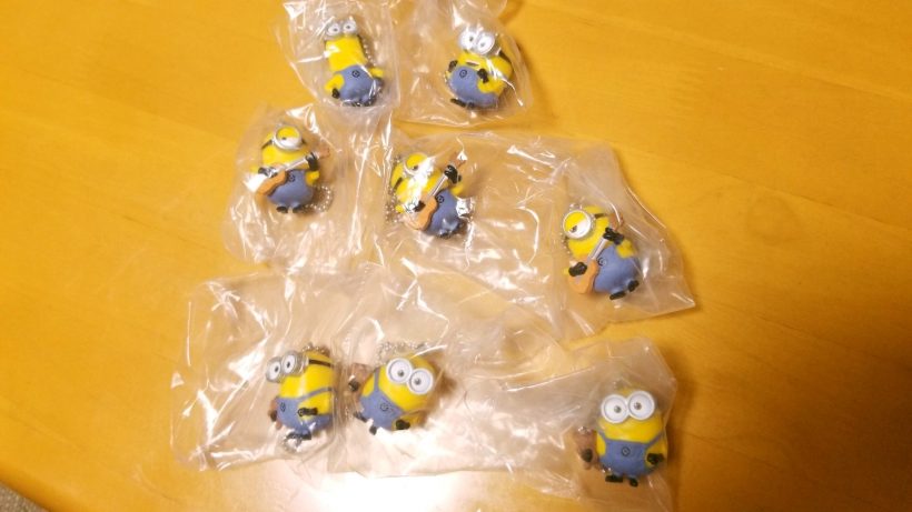 上はヨドバシ、下はヴィレヴァンで購入しました。アクリルキーホルダーは欲しかったやつ(グルーとミニオンのやつ)がゲットできたんですが、スクエア缶バッジと下のガチャガチャのマスコットは欲しいものがでませんでした…(ガチャの半分は妹のやつです)。
