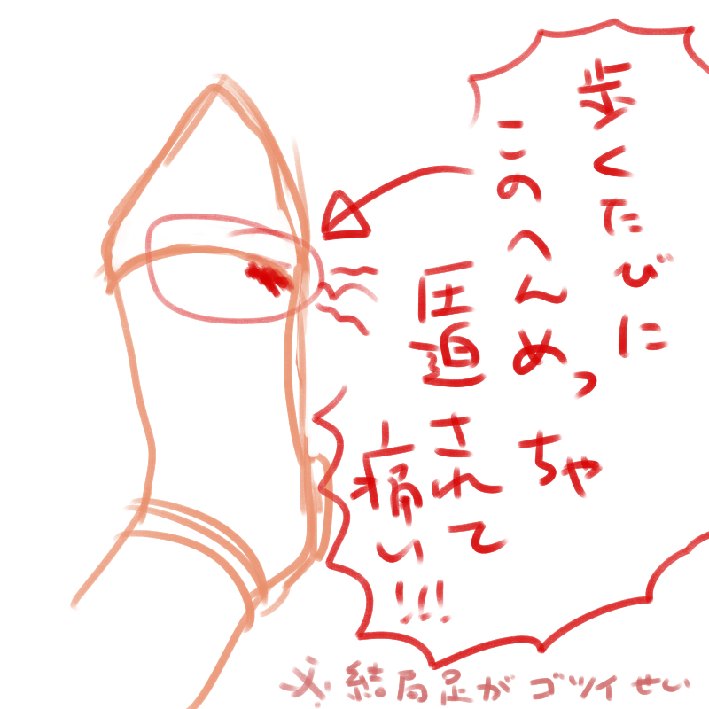 もうこれ、どうあがいても「詰み」じゃないですか?結局痛いのかよ。ばんそうこうと靴擦れ防止アイテムがあるから今のところ騙し騙し生きてますが、いたくならない人は全然平気なんでしょ???