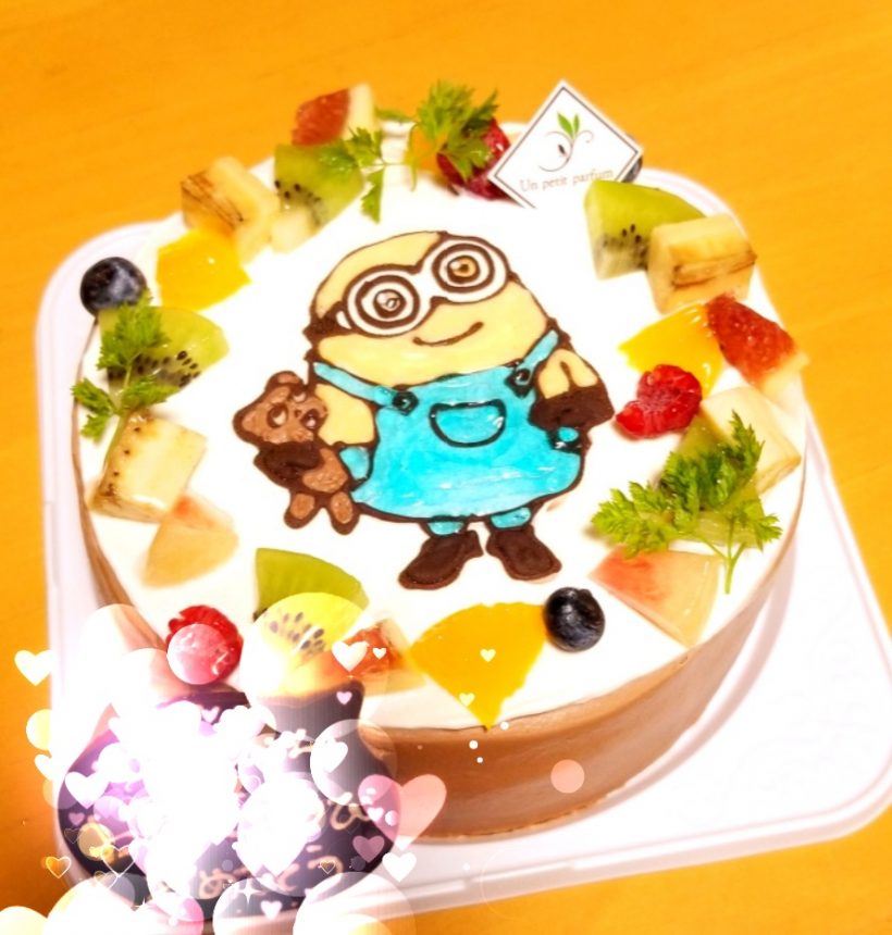 ケーキは亀田にある『Un petit parfum(アン プティ パルファン)』さんにお願いしました(母が)。再現度が高い!かわいい!!バナナがスポンジの間にもサンドされていてすごくおいしかったです。