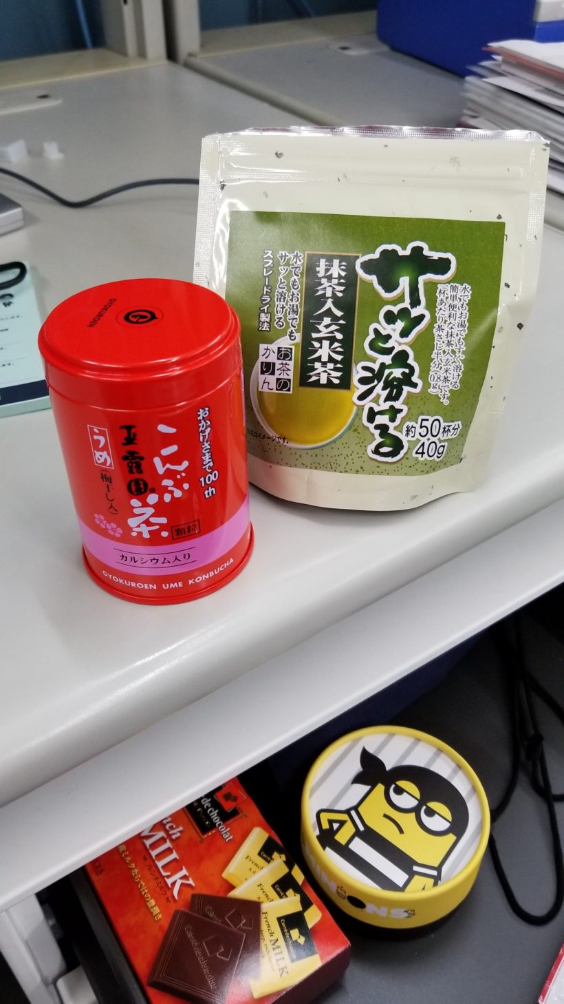 で、折角お湯も使えるということで粉茶と梅昆布茶を買ってきて持ち込みました!
