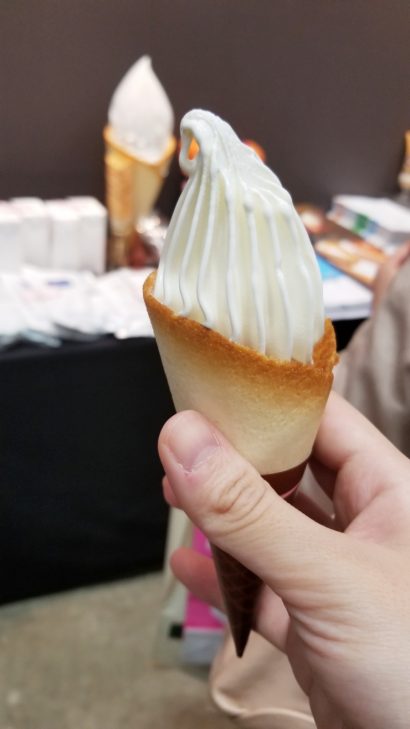あと私が日頃愛してやまないソフトクリーム『クレミア』の会社である日世株式会社さんのブースもあり、試食と言うには大盤振る舞いなミニサイズクレミアをいただきました。まさか食べれるとは思わなかったので尋常じゃなくテンションがぶち上がりました。