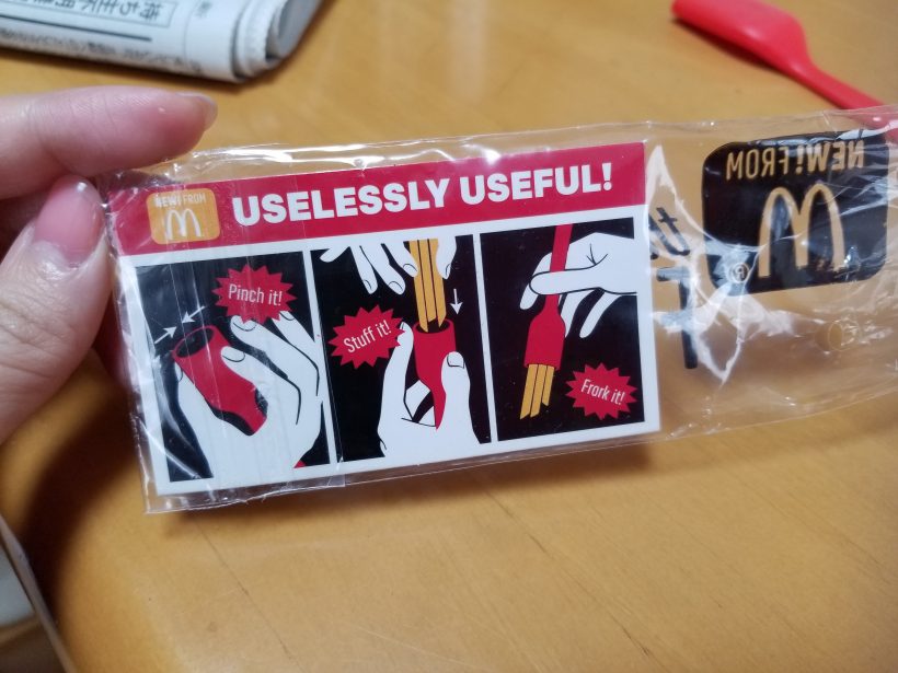ポテチ用トング的な、手を汚さないで芋を喰らいたい人向けのアイデア商品です。手で食べたい派の人間には正直もらっても……という使い道の商品ですが、その発想は面白くて好きです。