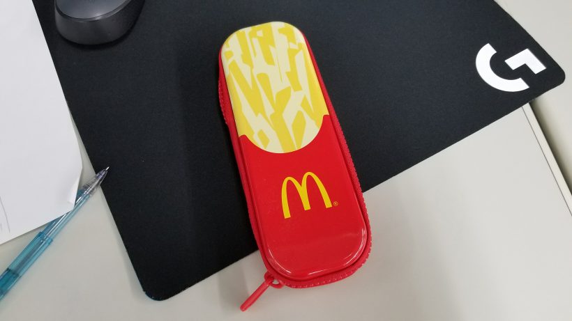 マックの福袋に入っていたポテト型ペンケースでお茶を濁しました。完全なる妥協です。