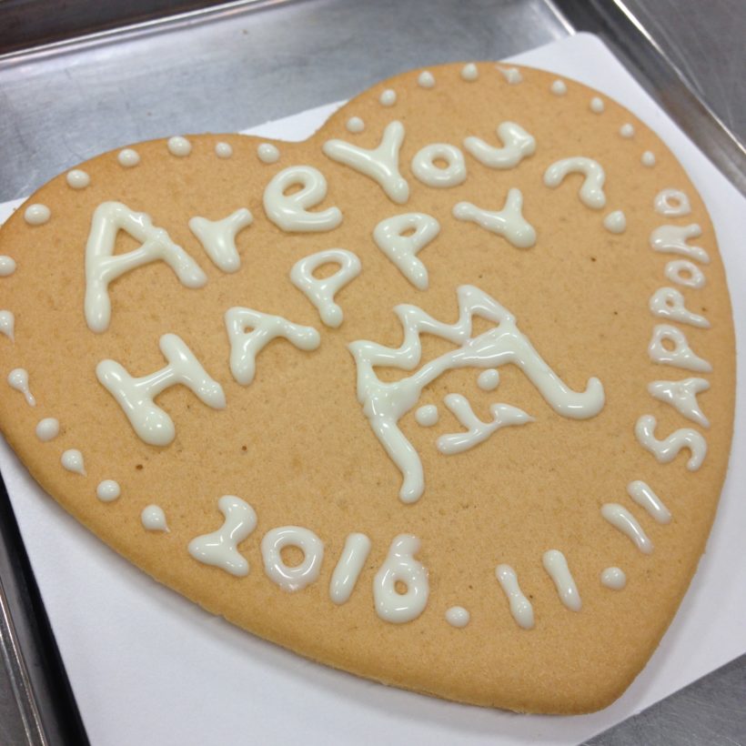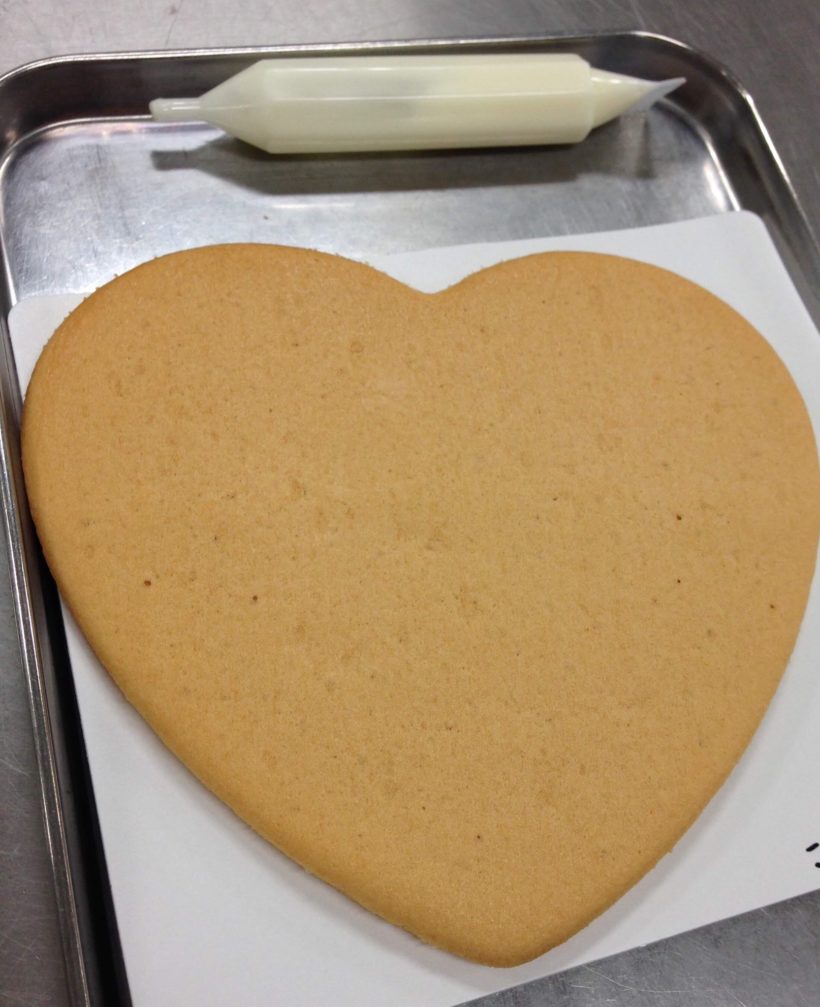 焼きあがった約14cmのハート型の大きな白い恋人に、ホワイトチョコレートペンでお絵描きするというもの。お絵描きしたクッキーを冷やし固めて袋に入れ、箱詰めまでを体験することができます。