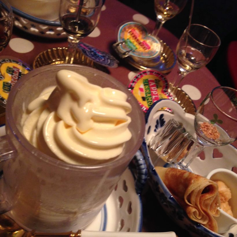 カップにアイス、グラスにリキュール。ちょっとしたクッキーやクレープのようなものも付いてきた気がします。