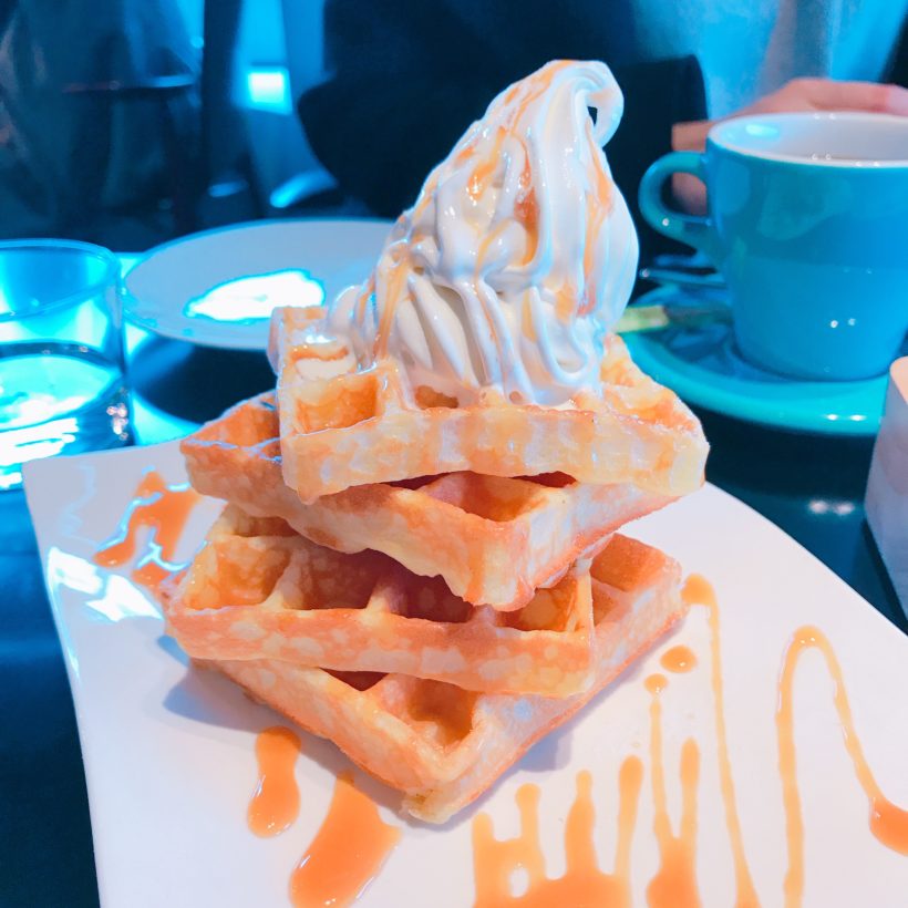 あと、すごい滑らかな舌触りの美味しいソフトクリームのクレミアが上に乗っかっているワッフルがとても美味しそうで、友達とシェアしていただきました。