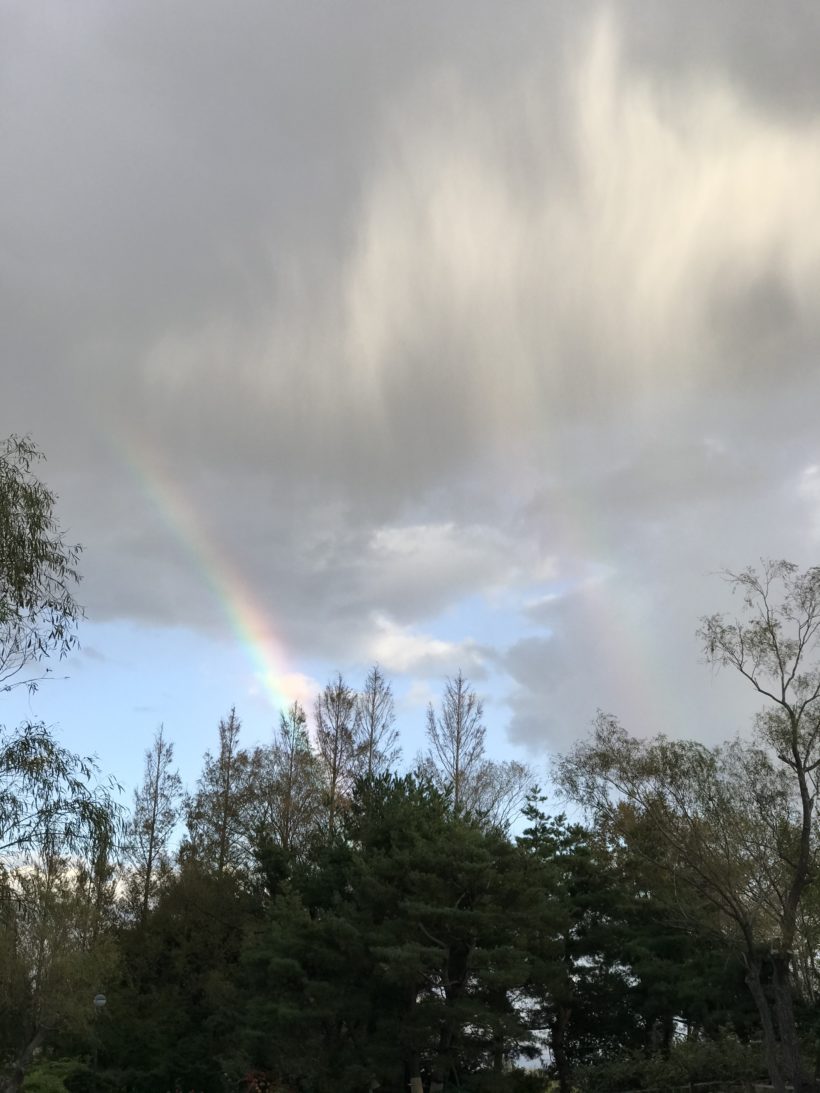イベントを満足してから、会場の天寿園のお庭も見てきたのですが、空に2本の虹が架かっていました。
