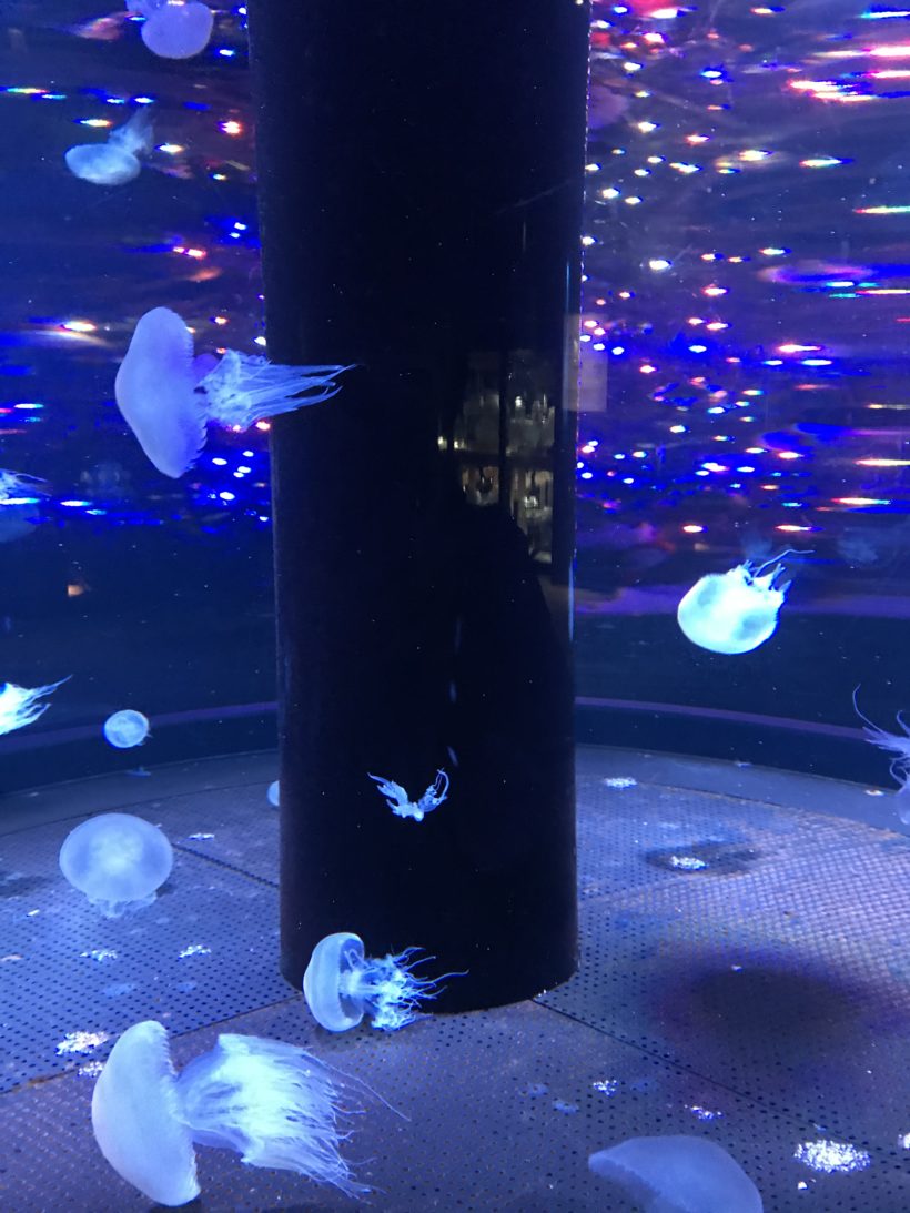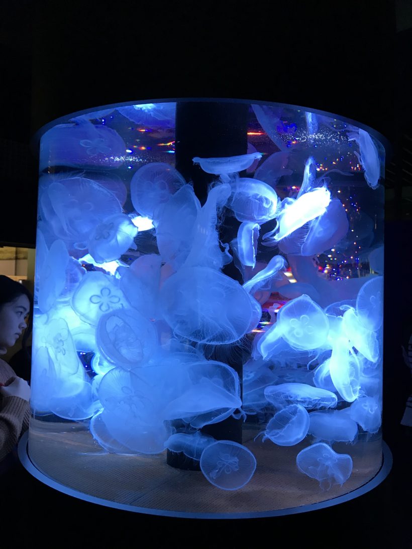 マリンピアはちょうどクリスマスツリーが点灯されて、前にクラゲの水槽があってとても幻想的でした。