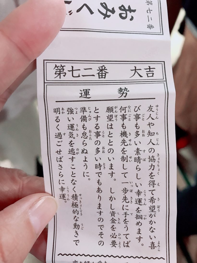 そして、おみくじは鈴と同じように目の前に箱ごと置いてあって、なんと無料…!