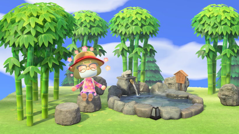 この露天風呂には入れないので隣に石のスツールを置いてみました。
