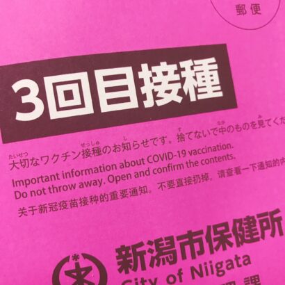 私のところにも新型コロナウイルス感染症の3回目ワクチンの接種券が届きました!