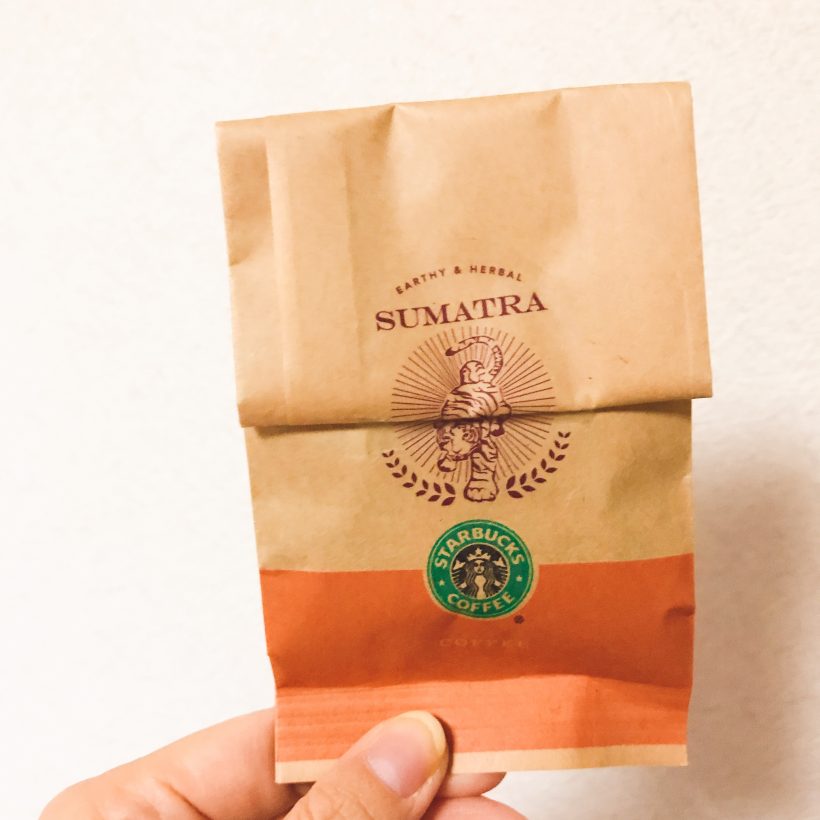 スマトラという豆で、何種類の豆をブランド、ではなくて1種類の豆しか使ってないとおっしゃってました。週末の楽しみにします♡