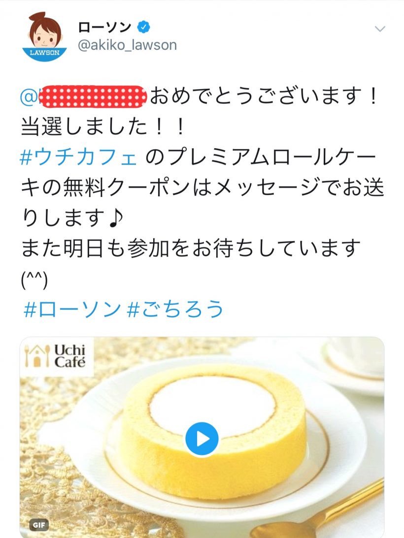 フォロー&リツイートで1日1万名様に #ウチカフェ のプレミアムロールケーキがその場で当たります(^^)2日目は4/6 10:59まで♪ #ローソン #ごちろう https://t.co/r6YzsnKCWQ pic.twitter.com/EmLvl55k0u— ローソン (@akiko_lawson) April 4, 2018