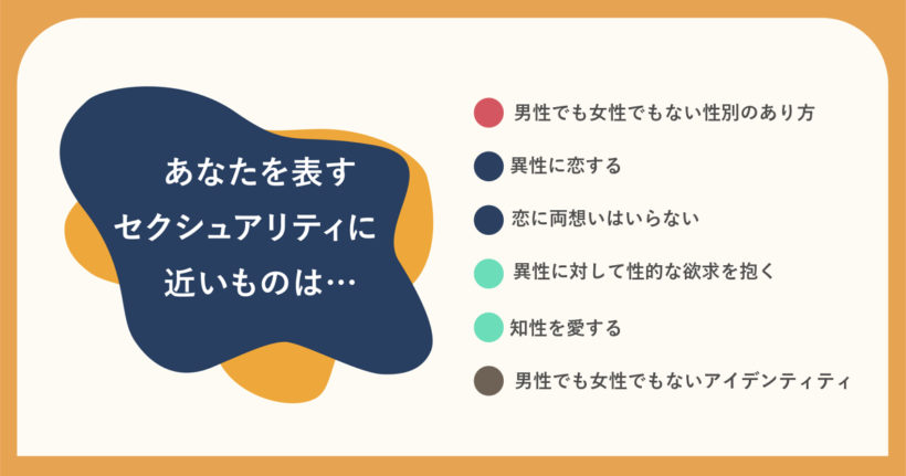 あくまでも参考といいますか、「こういうセクシュアリティが近いかもね」というアドバイスです。