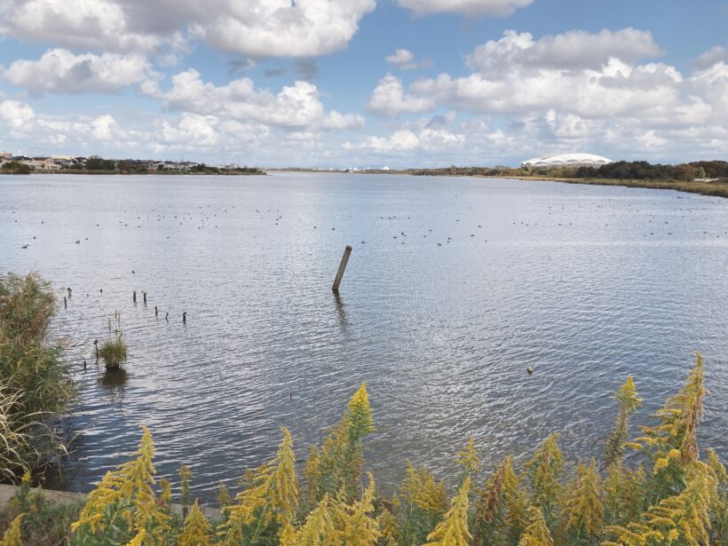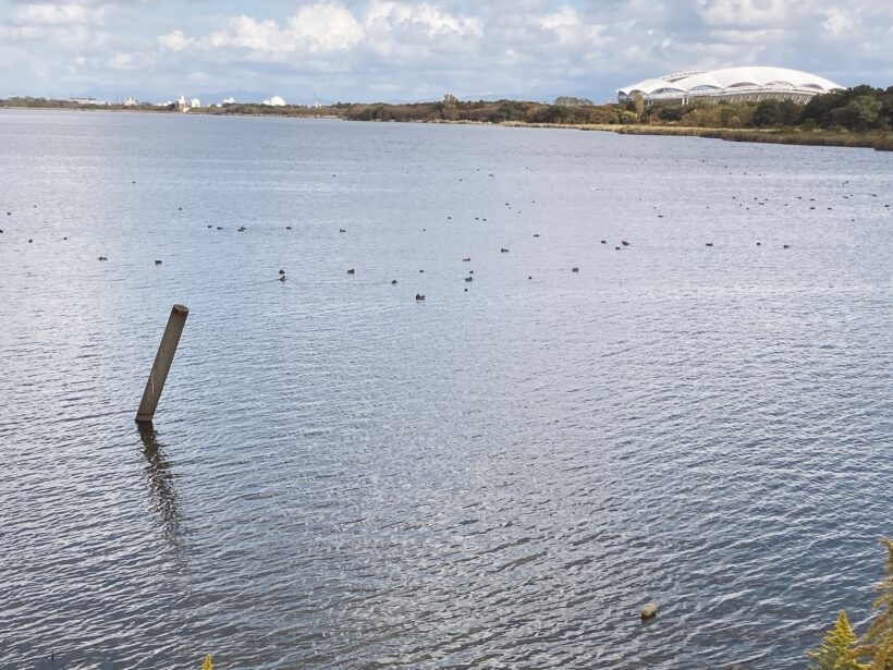 黒い点々としたもの全てが鴨だと思うんですけど、こうして見ると何がなんだかよく分からん…。とにかくすごい数おってびっくりしたっていう私の驚きが伝わればいいんですけど分かってくれます?