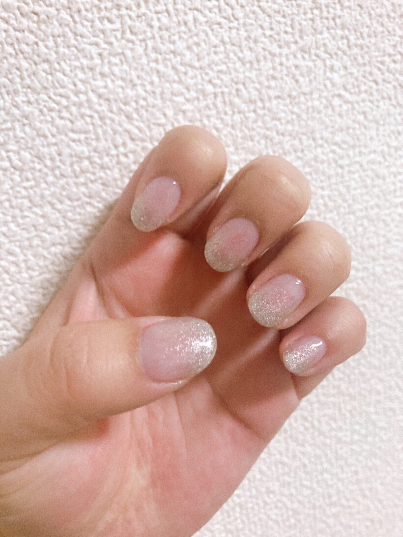 シルバーラメのグラデーションで雪っぽくしてもらいました!ちょっと写真の撮り方が下手くそすぎて分かりづらいのが悔やまれる。