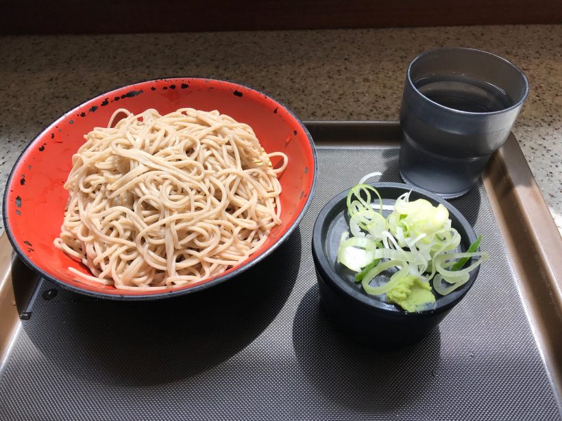 ネギ、ワサビは入れ放題。ただし、ツユは常温。