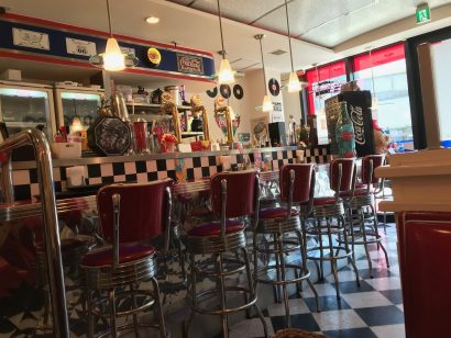 昼はハンバーガーとパンケーキ、夜は酒も豊富なお店です。