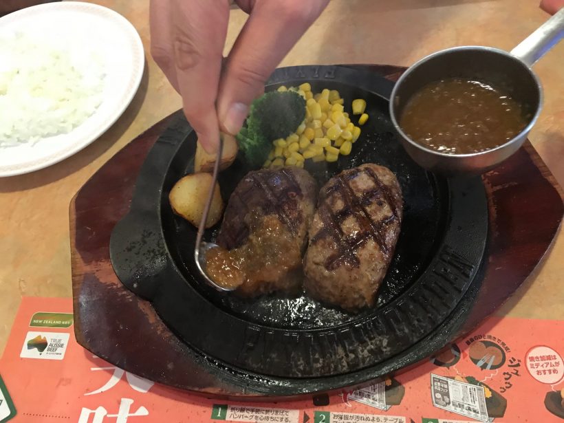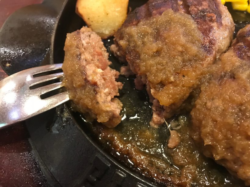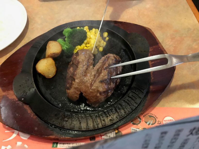 ころんとしたハンバーグをお店の人が切ってくれます。