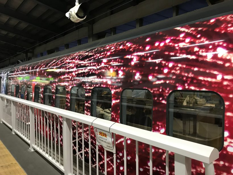 長岡花火が描かれていて、車両ごとに様々なアーティストがデザインした