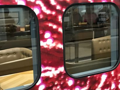 車両の真ん中に空間があり、シートは窓際に横向き配置。