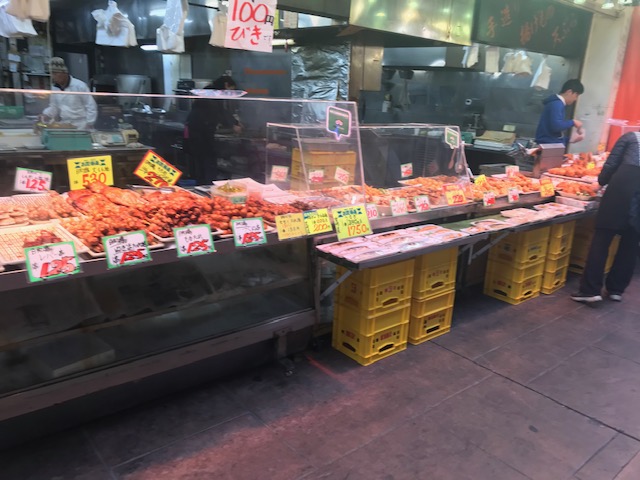 別の場所には、揚げ物や弁当など、ごはんのおかずが安く並んでいます。
