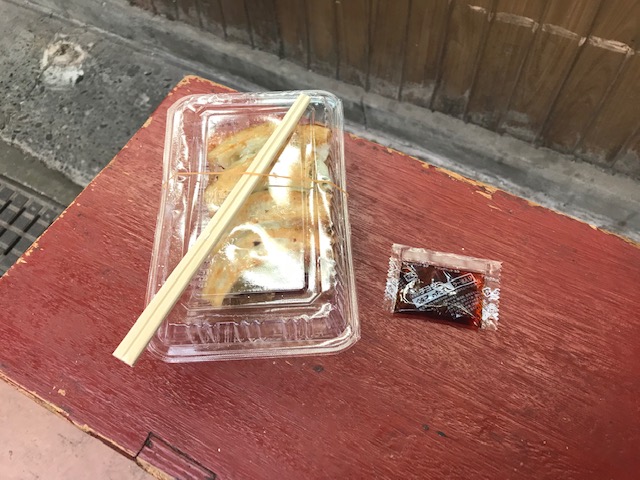 店先に小さなテーブルが置いてあり、そこで食べることも可能です。