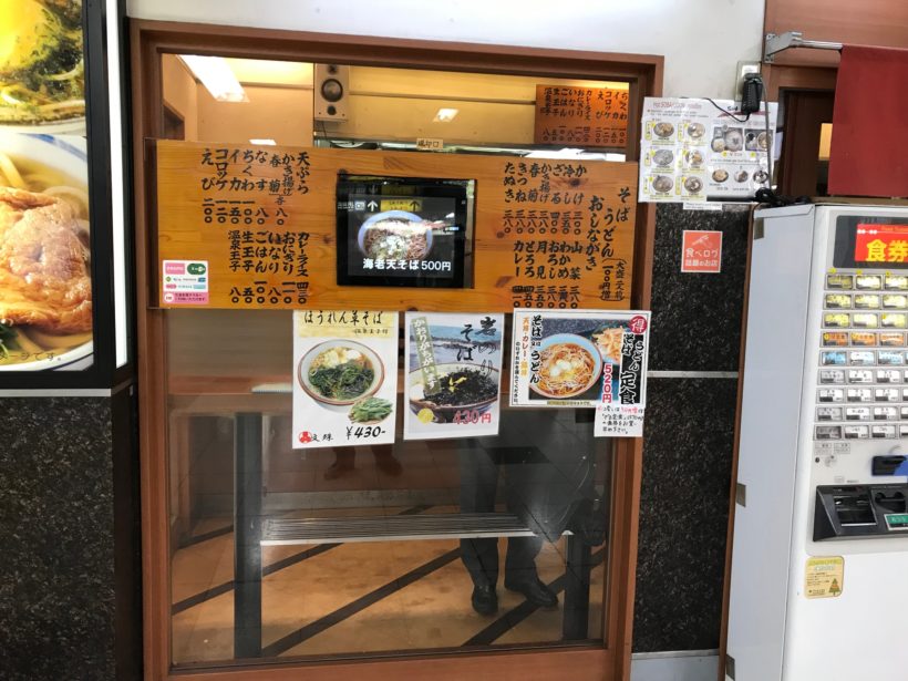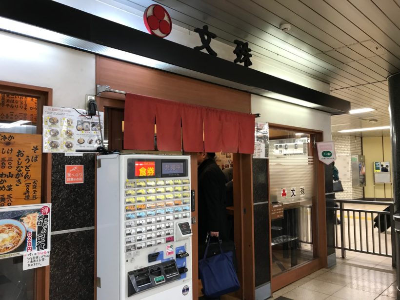 駅と駅が地下でつながっていますが、その通路内に一軒の立ち食いそば屋、