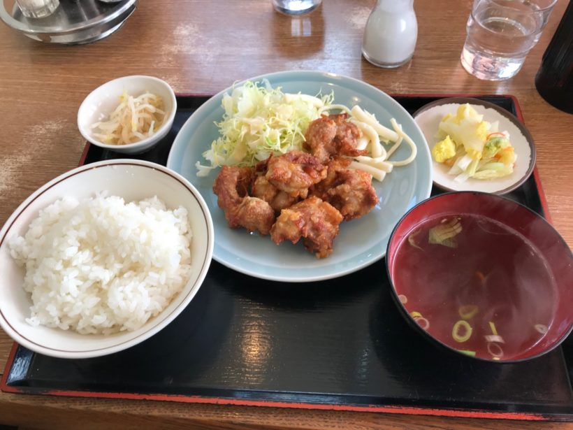 子どもはらーめんを食べましたが、おじさんは唐揚げ定食。