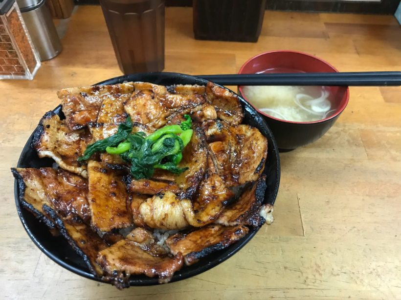 豚大学豚専攻丼学部のメニューは豚丼の大中小と味噌汁や漬物程度。
