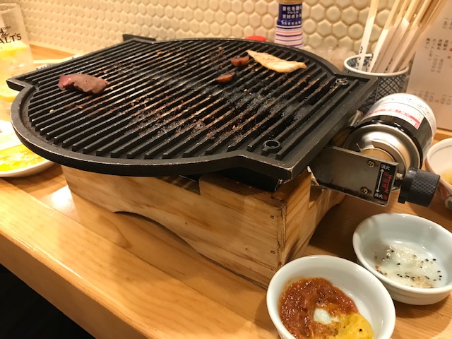 焼肉屋みたいにテーブルやカウンターで、セルフ焼きスタイルです。